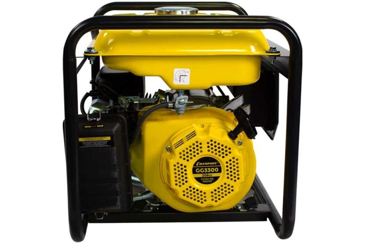 Для питания электроприборов мощностью до 3 кВт предназначен генератор Champion GG3300. Он оснащен двигателем с одним цилиндром, четырехтактным двигателем с верхним расположением клапанов и охлаждением воздухом. Генератор обеспечивает продолжительную работу благодаря низкому расходу топлива.